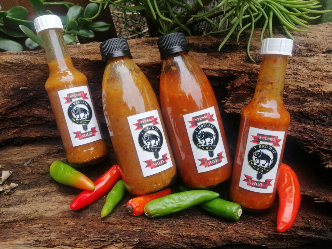 Fortunately we moved on to the more refined process of beer brew kits but that was not really where our passion was. Creating home decor from old sleeper wood was where the interest lay. We also discovered that our friends actually liked our homemade chilli sauces. We had by now grown attached to the StuBru "brand" and decided to stick with it for the chilli sauces. We also decided that the boar in the Nisbet clan badge would work perfectly for the sleeper wood projects as The WoodBoar. Please feel free to share in our joy and browse our offerings by clicking on the links below.